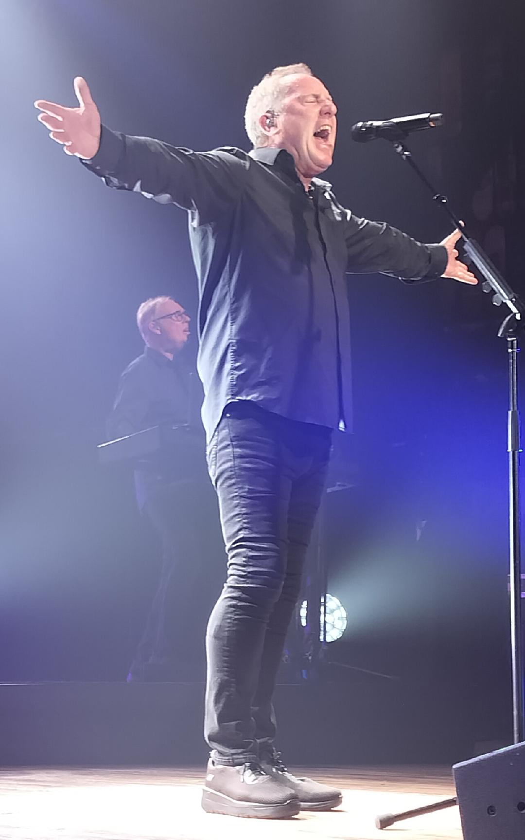 This lead to the addition of She’s Leaving but not before Mr. M. adjusted his mic box and said “sorry about that, I thought the batteries were going to fall out of my ass.” Mr. H. said “you have batteries in your ass?” Mr. M. said “yes don’t you?” Mr. H. laughed and said “actually…yeah…” Mr. M. said “They don’t call me the Energizer bunny for nothing.” LOL!😂 He then told us we were getting “FOUR songs from The Architecture and Morality album”. The song started, people cheered and Mr. M. said “well you cheered…..what’s it called?” so many of us yelled out the answer LOL. The powerful A&M Trifecta was next and I was so glad to get to see JoA/MoO again. Who knows when the next time will be as I don’t have plans on doing any of the announced shows next year so I soaked it in again tonight. The cheers were amazing and Mr. H. pointed first to Stuart and then Mr. M. to have the crowd cheer for each.😀